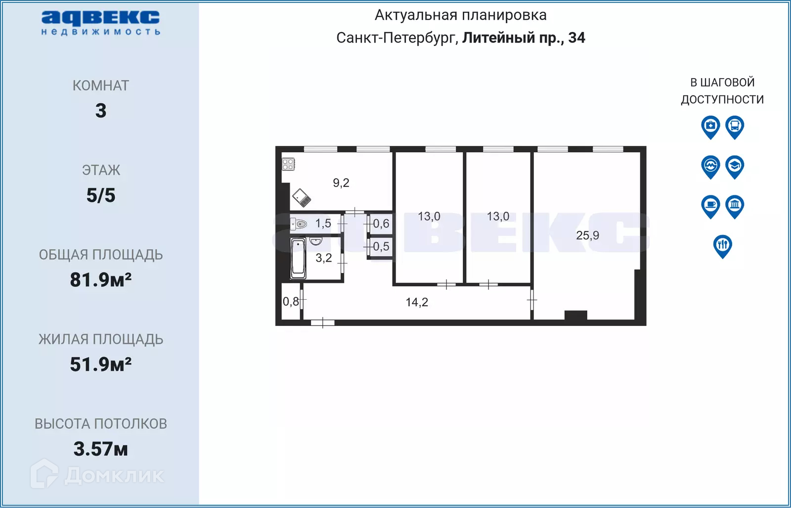 Общая площадь 81.9 м2