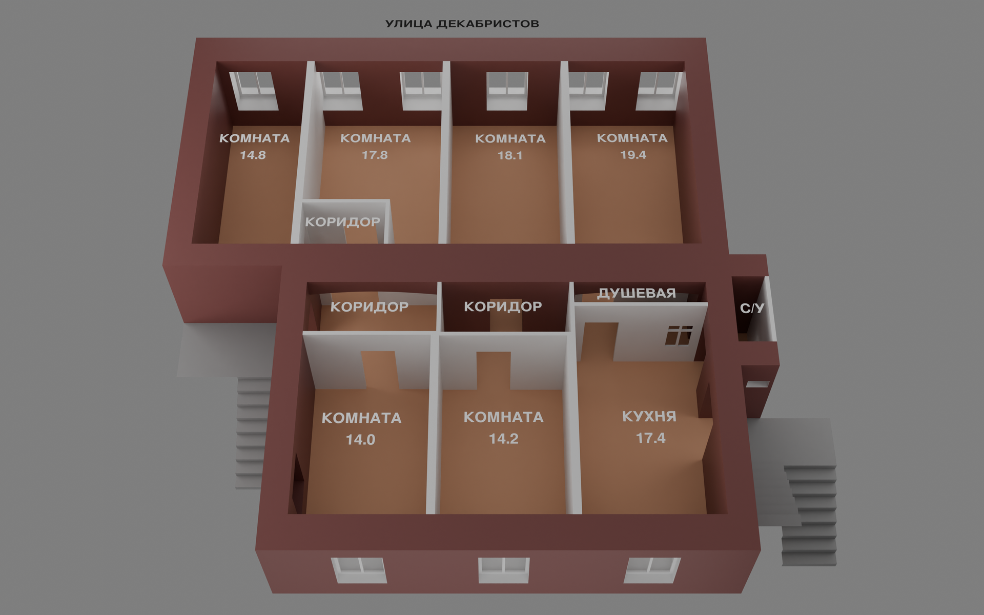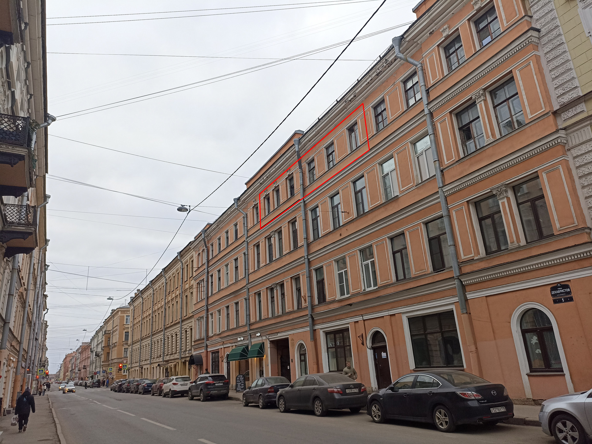 Квартира расположена в двух шагах от мэрии, рядом с Исаакиевским собором и Театральной площадью, в начале ул.Декабристов (дом Якоби, архитекторы Барч и Вебель, 1852г.) Кирпичный дом, тепло и сухо. Парадный вход с улицы Декабристов, ,,черный" - в арку и налево. 6 окон выходят на южную сторону (на улицу Декабристов), поэтому очень солнечно. И 3 окна - в уютный тихий двор. Квартира двухсторонняя, правильной формы. Капитальные стены (местами 90 см!) расположены по всему периметру квартиры. По центру квартиры - симметричные кирпичные арки. Такая несущая конструкция значительно увеличивает возможности планировки, в отличие от встречающихся порой капитальных стен поперек квартиры...