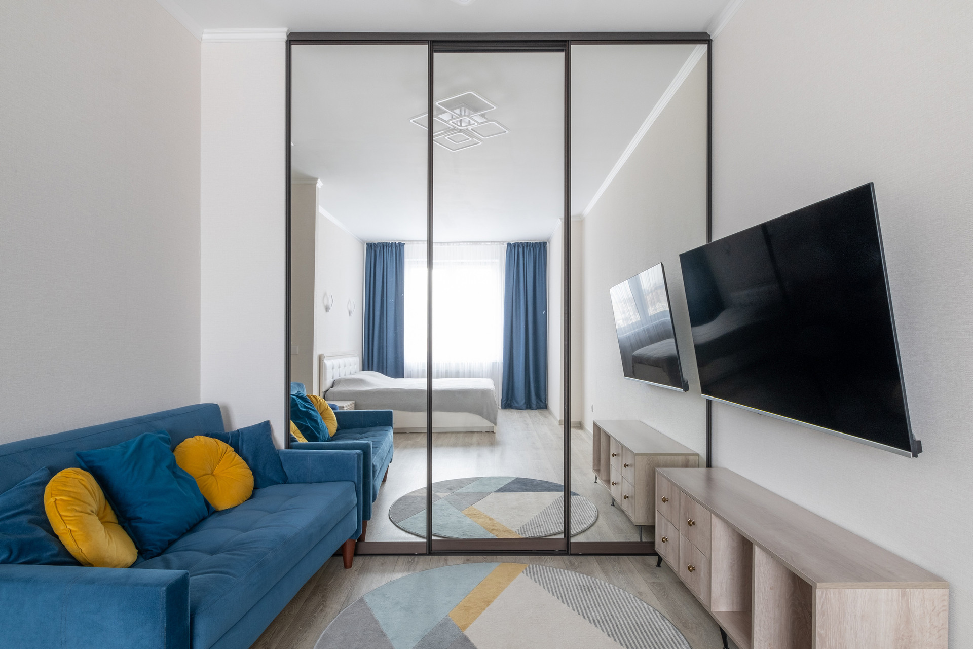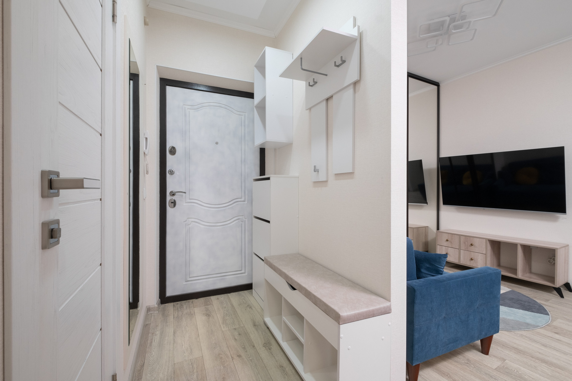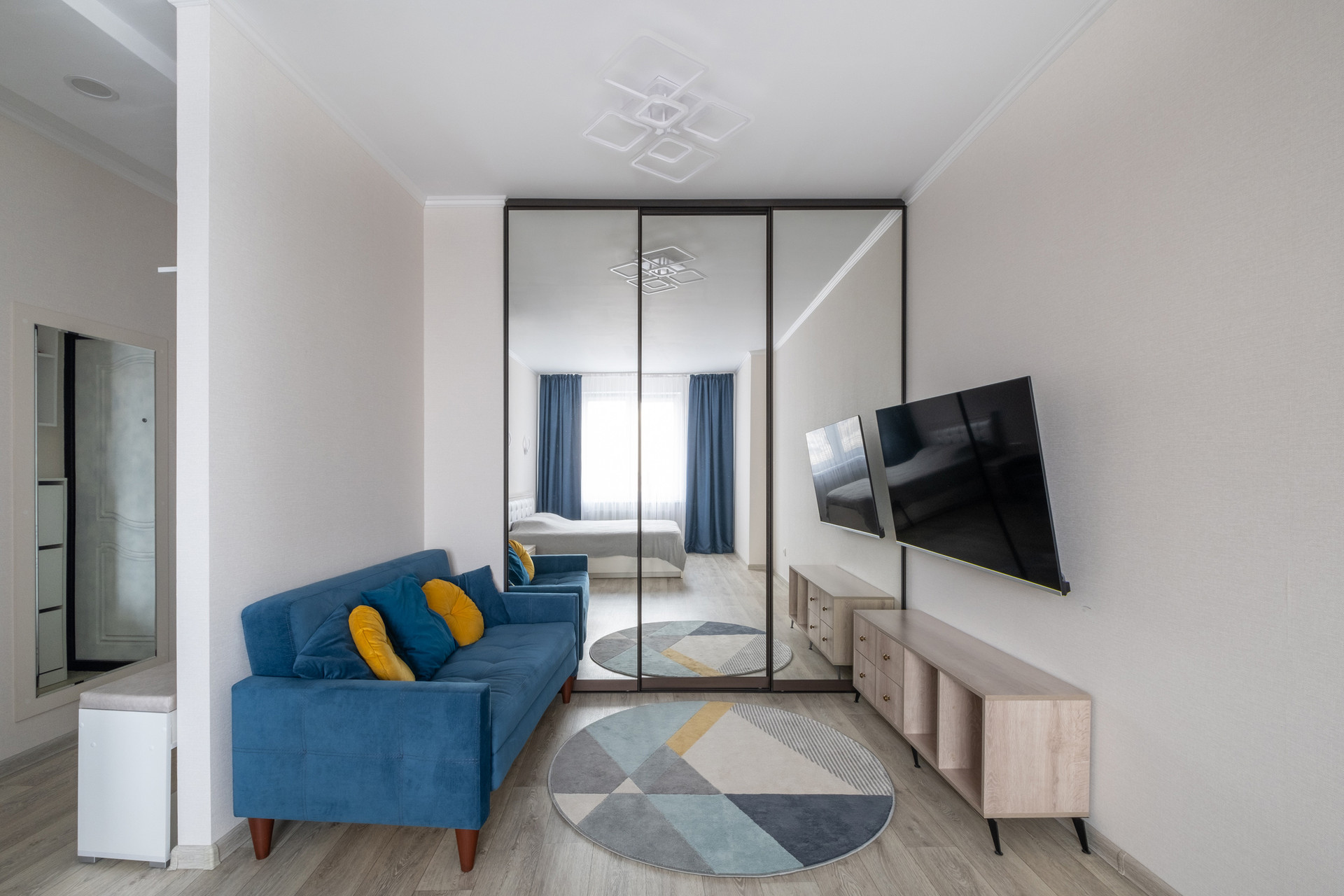 Квартиру покупали для жизни и ремонт делали для себя: это четвертый по счету ремонт у собственника, поэтому выбирали практичные решения, создали максимально удобное пространство для жизни. Мебель хорошего качества, вся техника в рабочем состоянии.