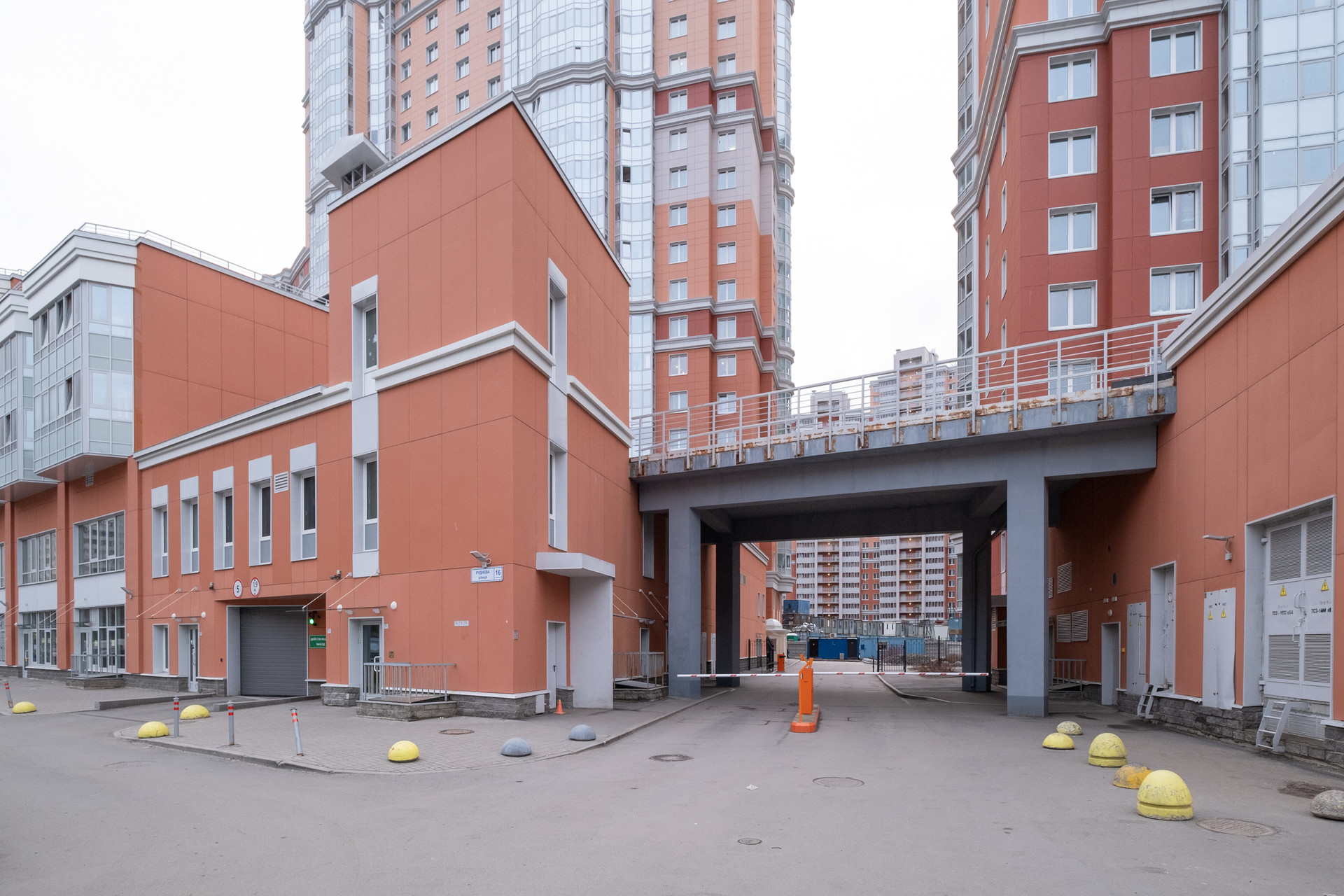 Ухоженная и чистая парадная. Предусмотрены два входа: со двора (проход во двор через шлагбаум) и с улицы по стилобату (подъем на лифте). Придомовая территория благоустроена, есть скамейки для отдыха, посажены деревья черешни и вишни. Двор под видеонаблюдением, в жилом комплексе есть охрана, дежурный диспетчер - оперативно реагируют на обращения.