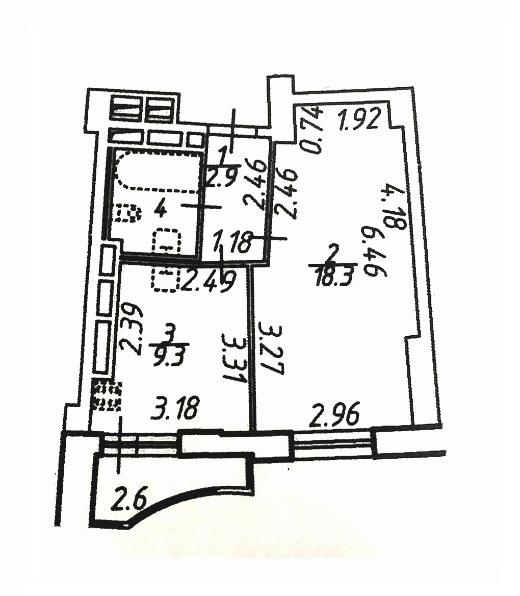 Балкон, лоджия 1 балкон
