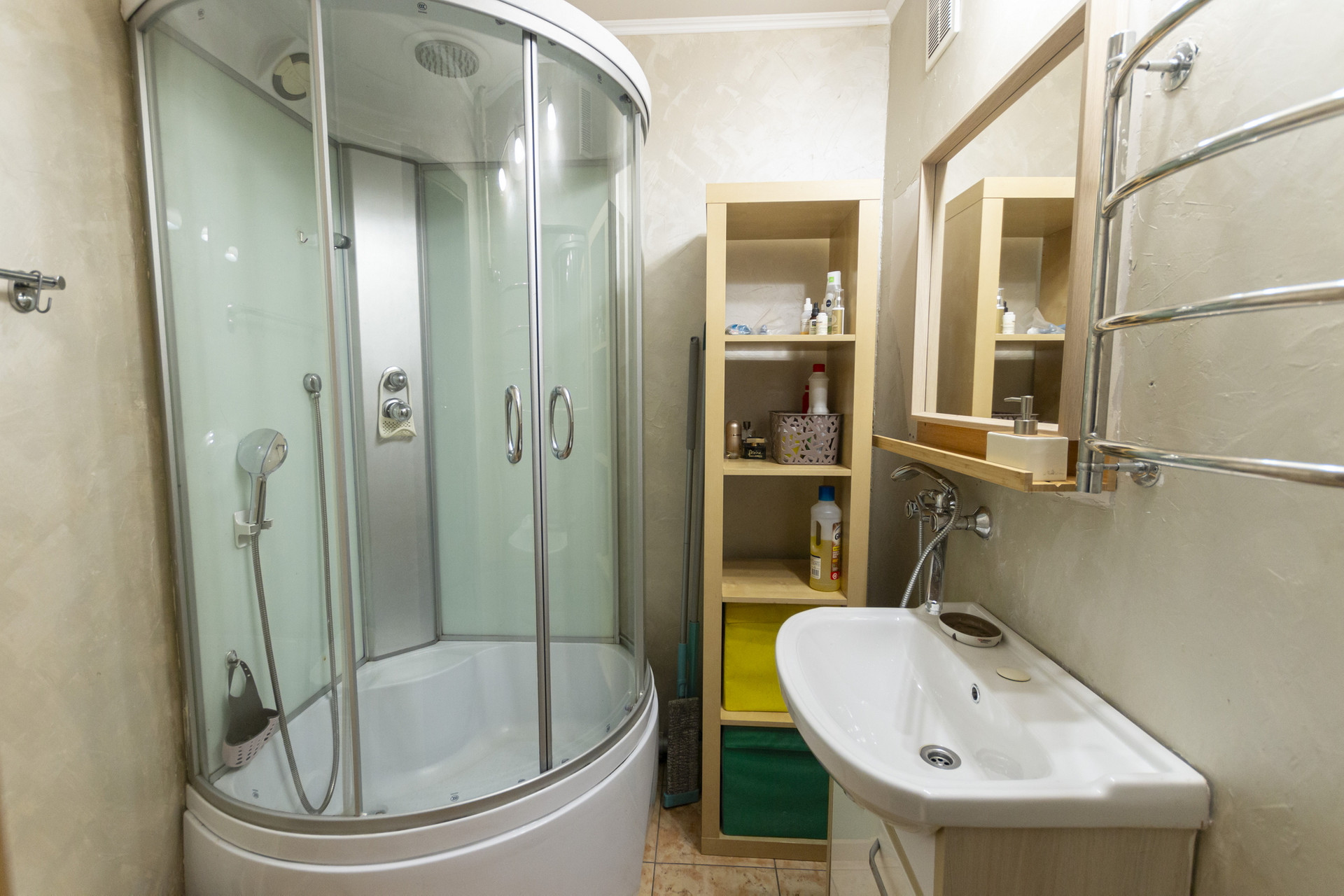 Санузел раздельный, в ванной комнате есть пространство для замены душевой кабины на полноценную ванну.