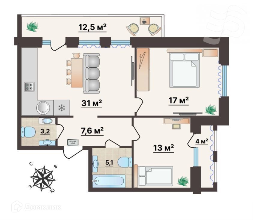 Жилая площадь 78 м2