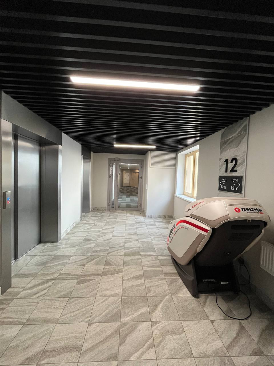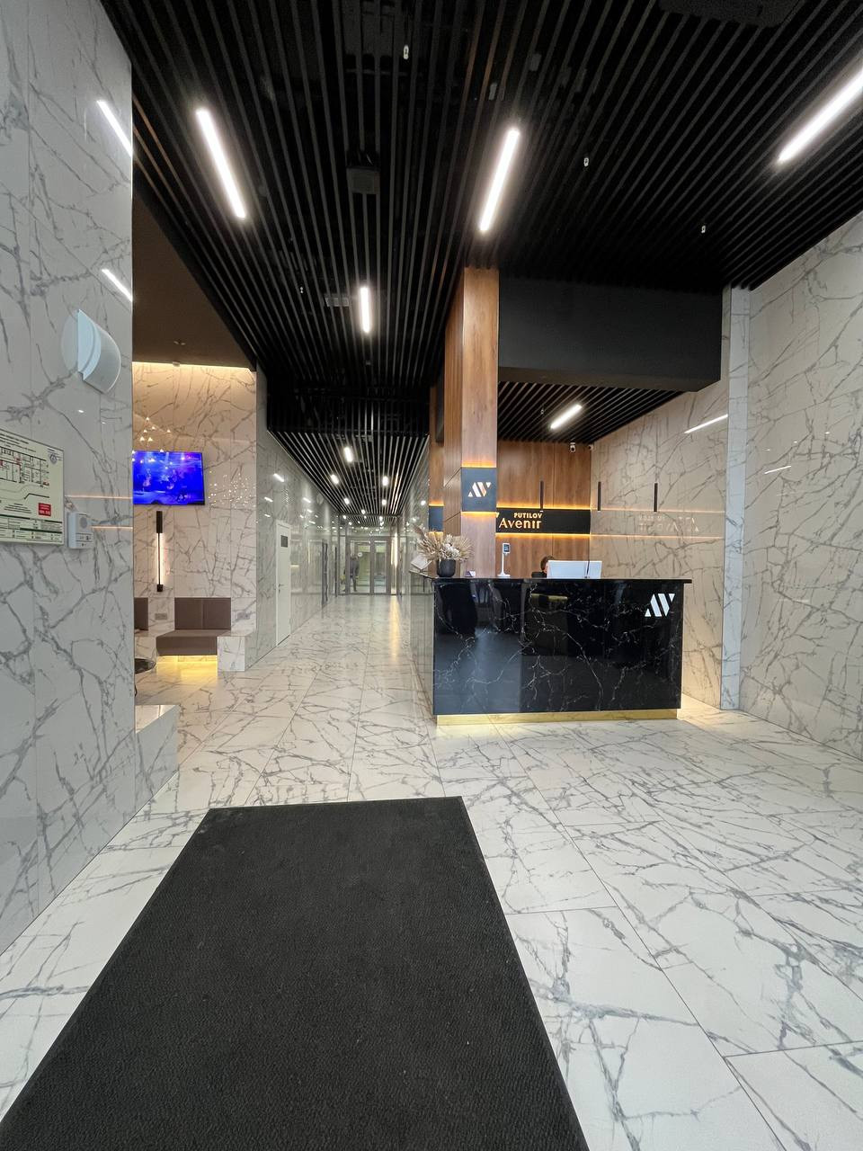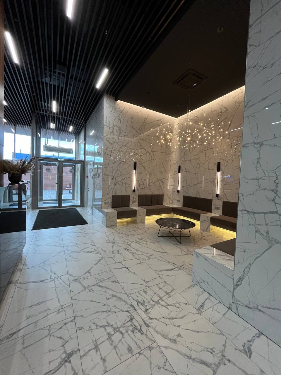 Дом с красивой входной группой, зоной коворкинга и ожидания, ресепшн.