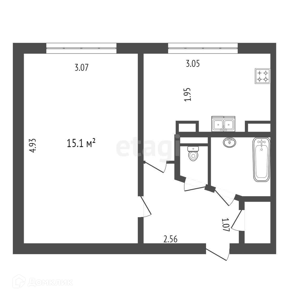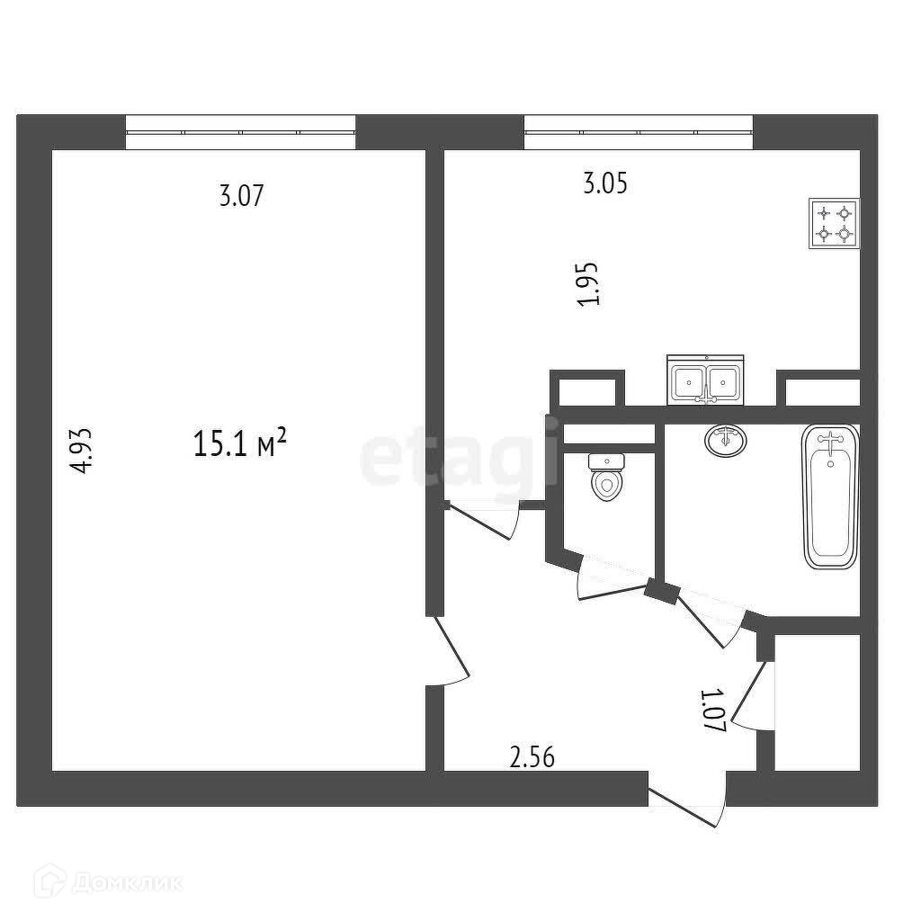 Жилая площадь 15.1 м2
