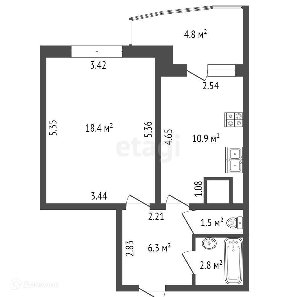 Балкон, лоджия 1 балкон