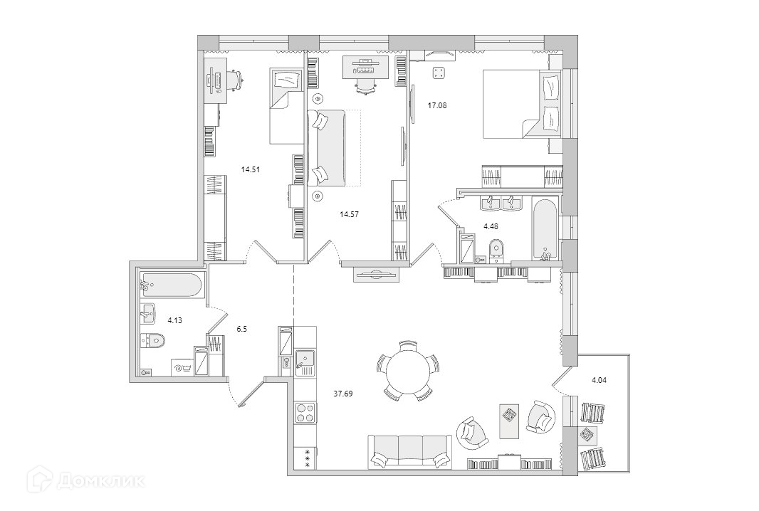 №324546 Белоостровская д.10 Трехкомнатная квартира 103м с просторной кухней гостиной 37,69м. Мастер спальня для родителей 17,08м с санузлом 4,48м(с окном).Еще две спальни 14,57м и14,51м. Выделенная зона прихожей 6,5м., второй санузел 4,13м.