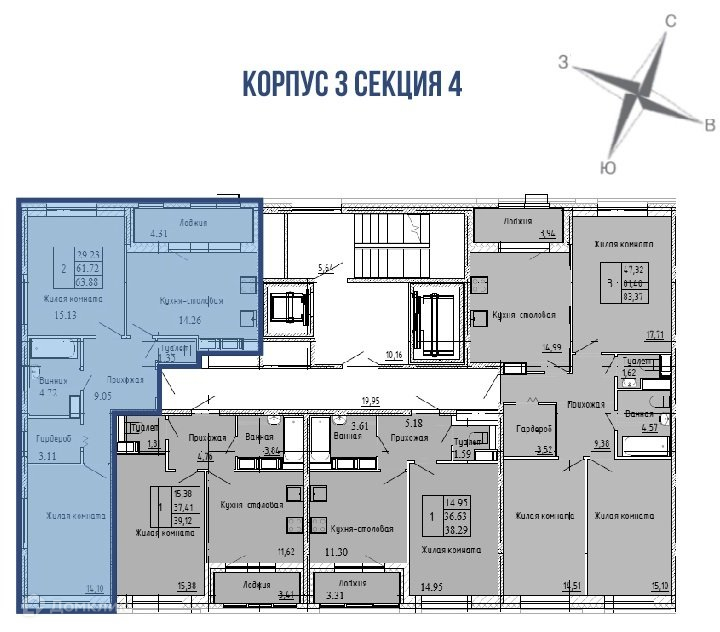 Общая площадь 63.88 м2