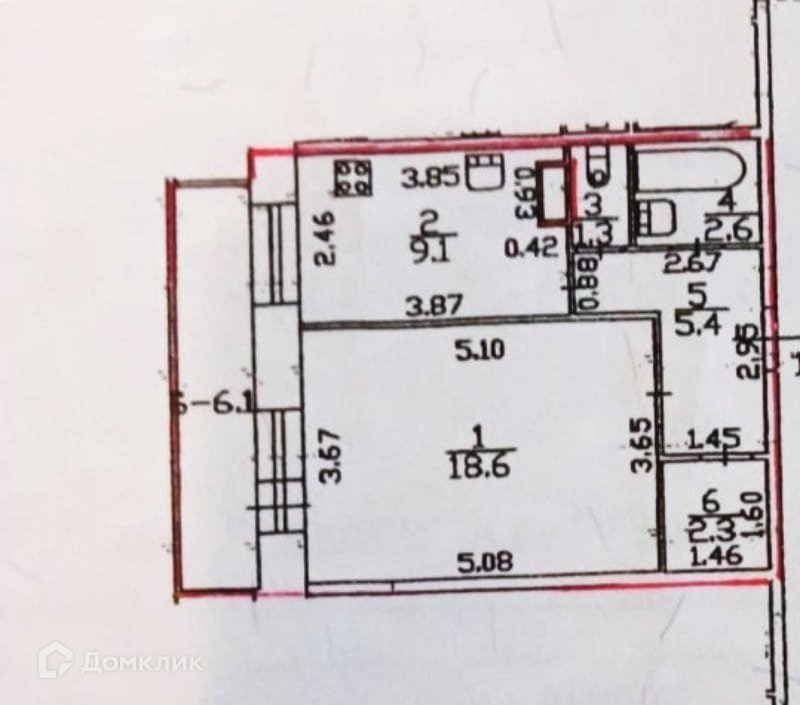 Жилая площадь 18.6 м2