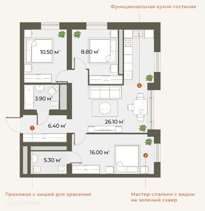 Количество комнат 3