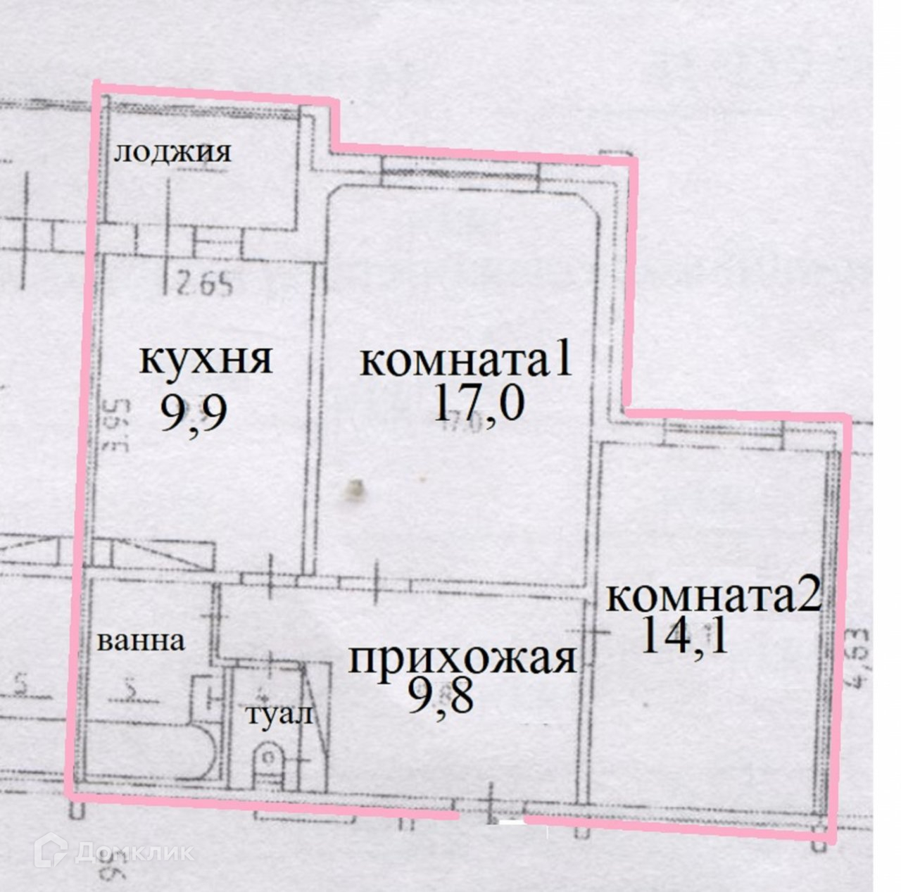 Жилая площадь 31.1 м2