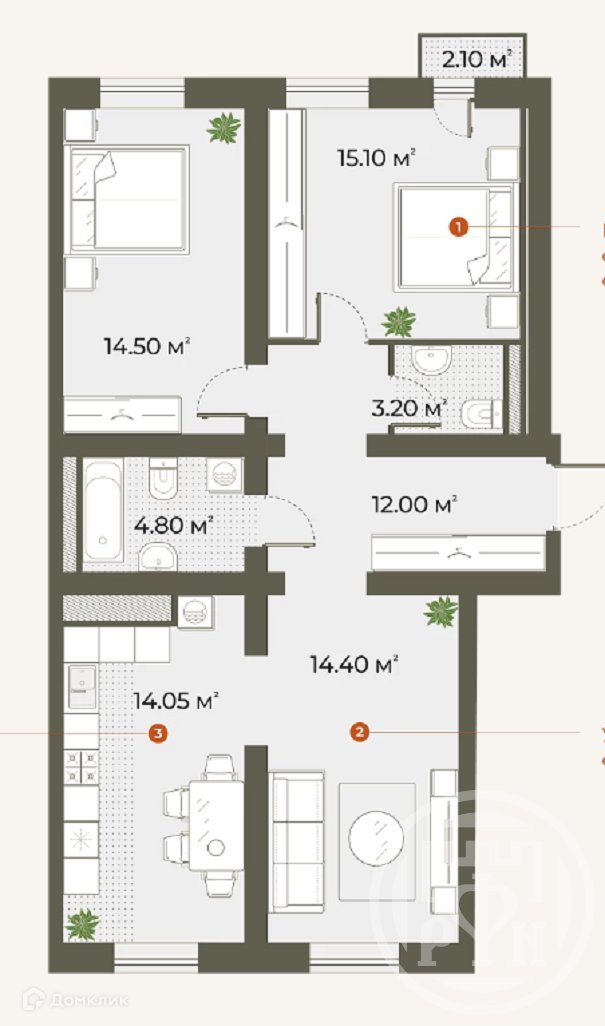 Количество комнат 3