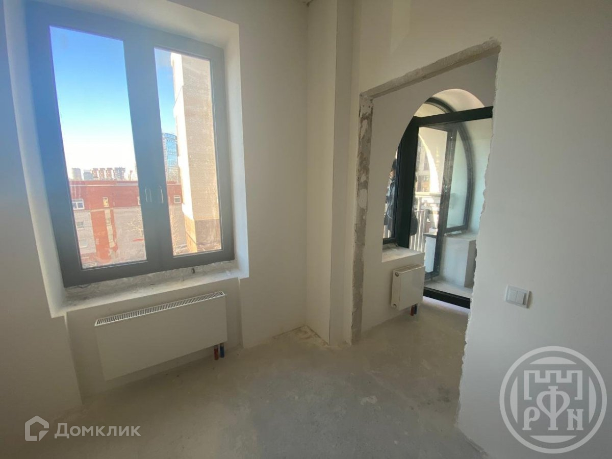 Отделка подчистовая.На полах стяжка и гидроизоляция,стены выровнены и оштукатурены,выведены розетки,алюминиевые стеклопакеты на окнах,радиаторы тепла,вывод по сан.технику.