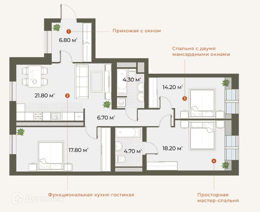 3-комнатная квартира, 94.5 м2, этаж 6 / 6, на продажу в Санкт-Петербурге, Зеленогорская улица, 3