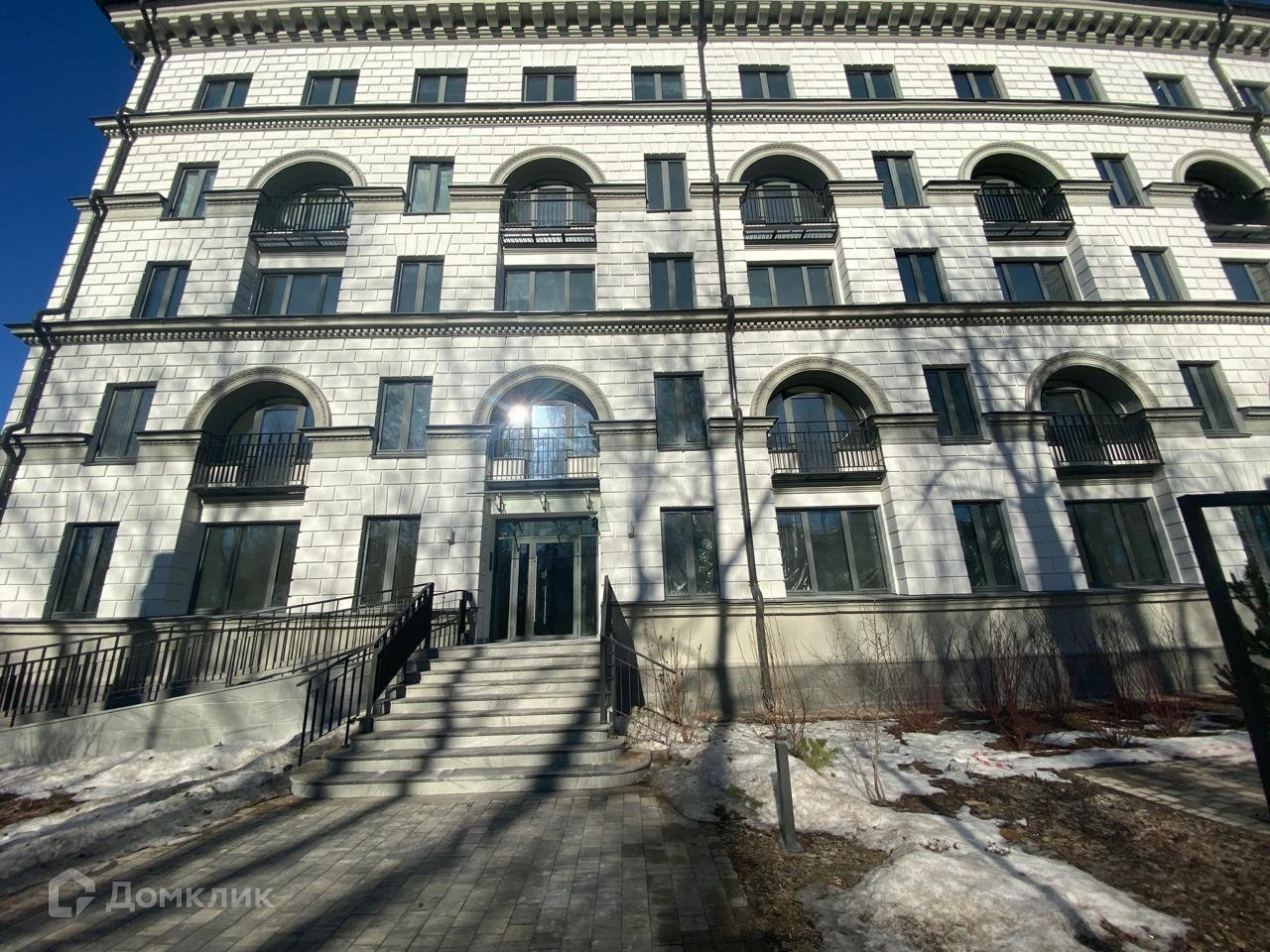 Проект выполнен с стиле Неоклассика.Французкие балконы, рунтованный фасад,квартиры-мансарды на последнем этаже.