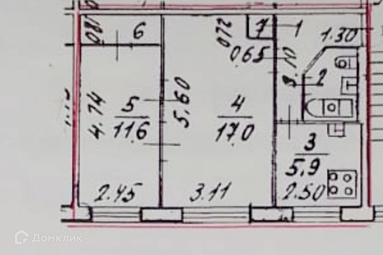 2-комнатная квартира, 44.5 м2, этаж 5 / 5, на продажу в Санкт-Петербурге, Бестужевская улица, 47