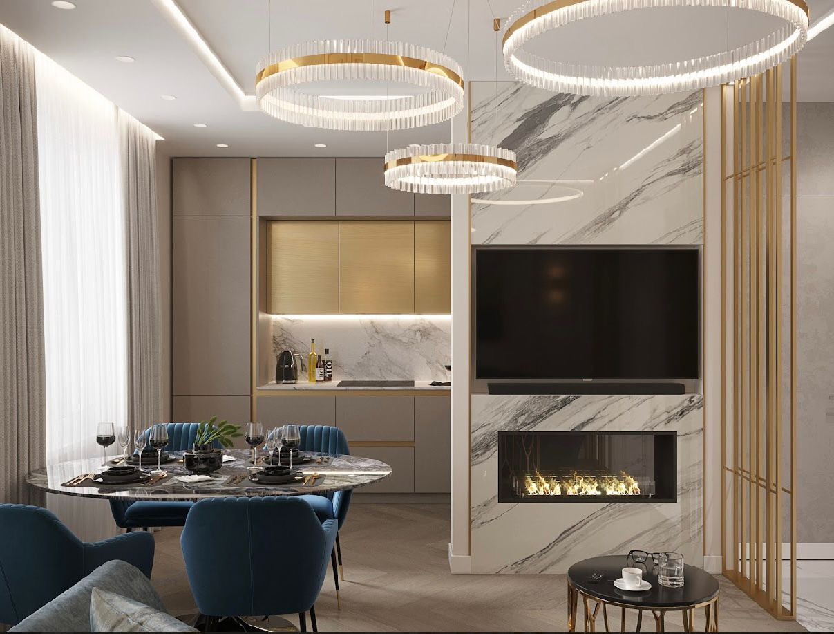 - В квартире применяется система умный дом, предусмотрено несколько групп освещения. Мебель изготовлена на заказ, установлена бытовая техника ведущих мировых брендов;