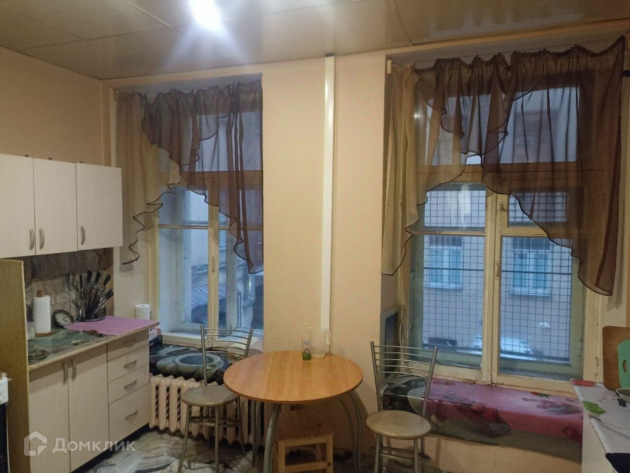 В больших комнатах и на кухне по 2 окна. Окна из комнат выходят на 4-ю Красноармейскую ул., окна кухни  во двор.