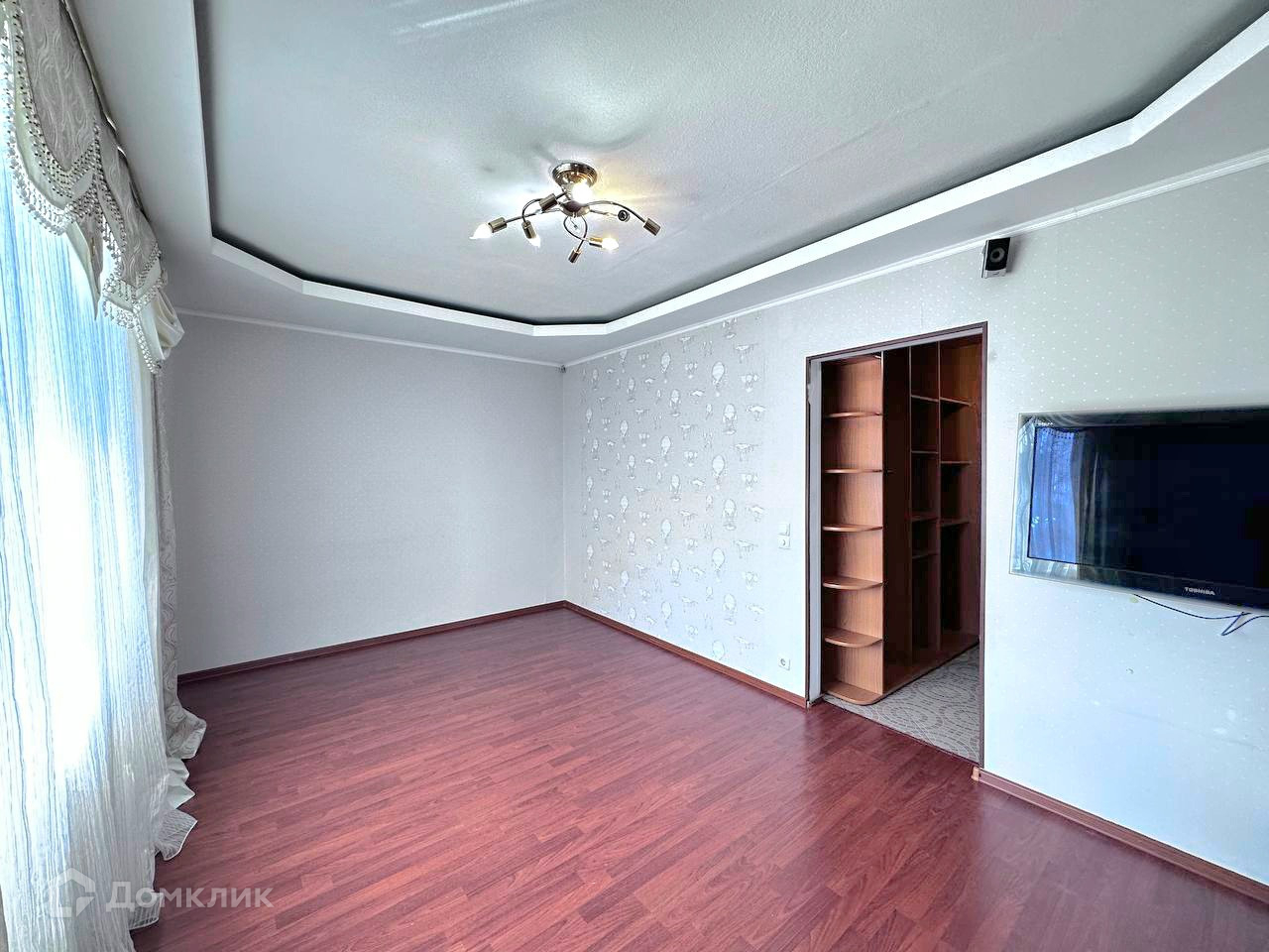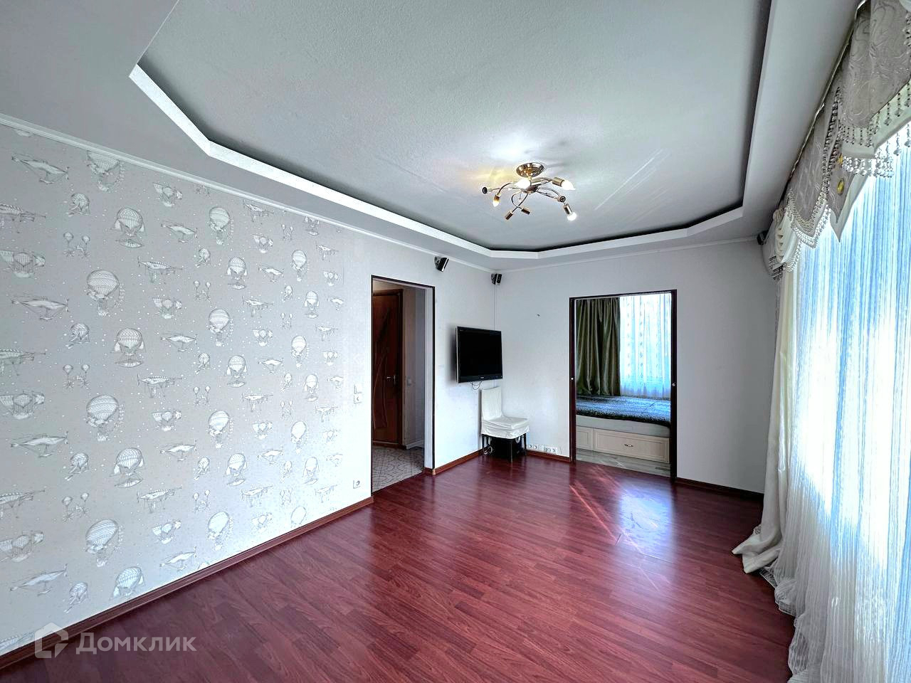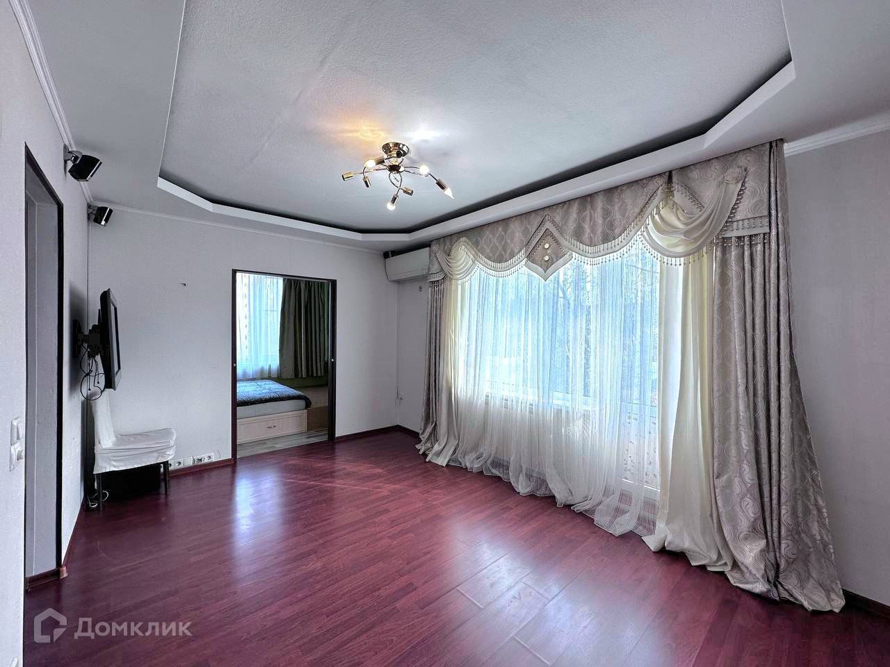 Гостиная (15,2 м2) правильной прямоугольной формы. Можно разметить большой диван, для приема большего количества гостей. Широкое окно обеспечивает высокое проникновение света в квартиру, но летом не будет жарко, т.к. установлен кондиционер. Из гостиной есть выход на балкон. Летом на нем цветут цветы в вазонах.