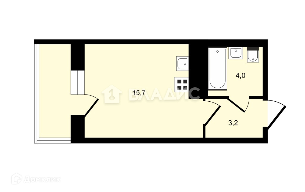 Жилая площадь 15.7 м2
