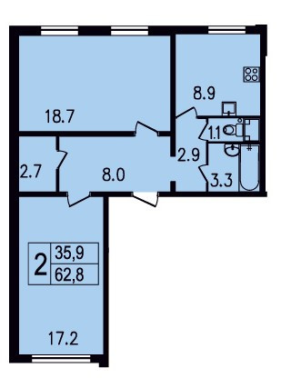 Общая площадь 63.2 м2