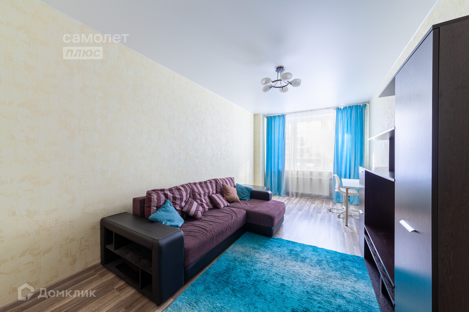 Солнечная квартира с большими окнами, благодаря которым комната наполняется светом и свежим воздухом, что способствует созданию приятной атмосферы для отдыха и работы.