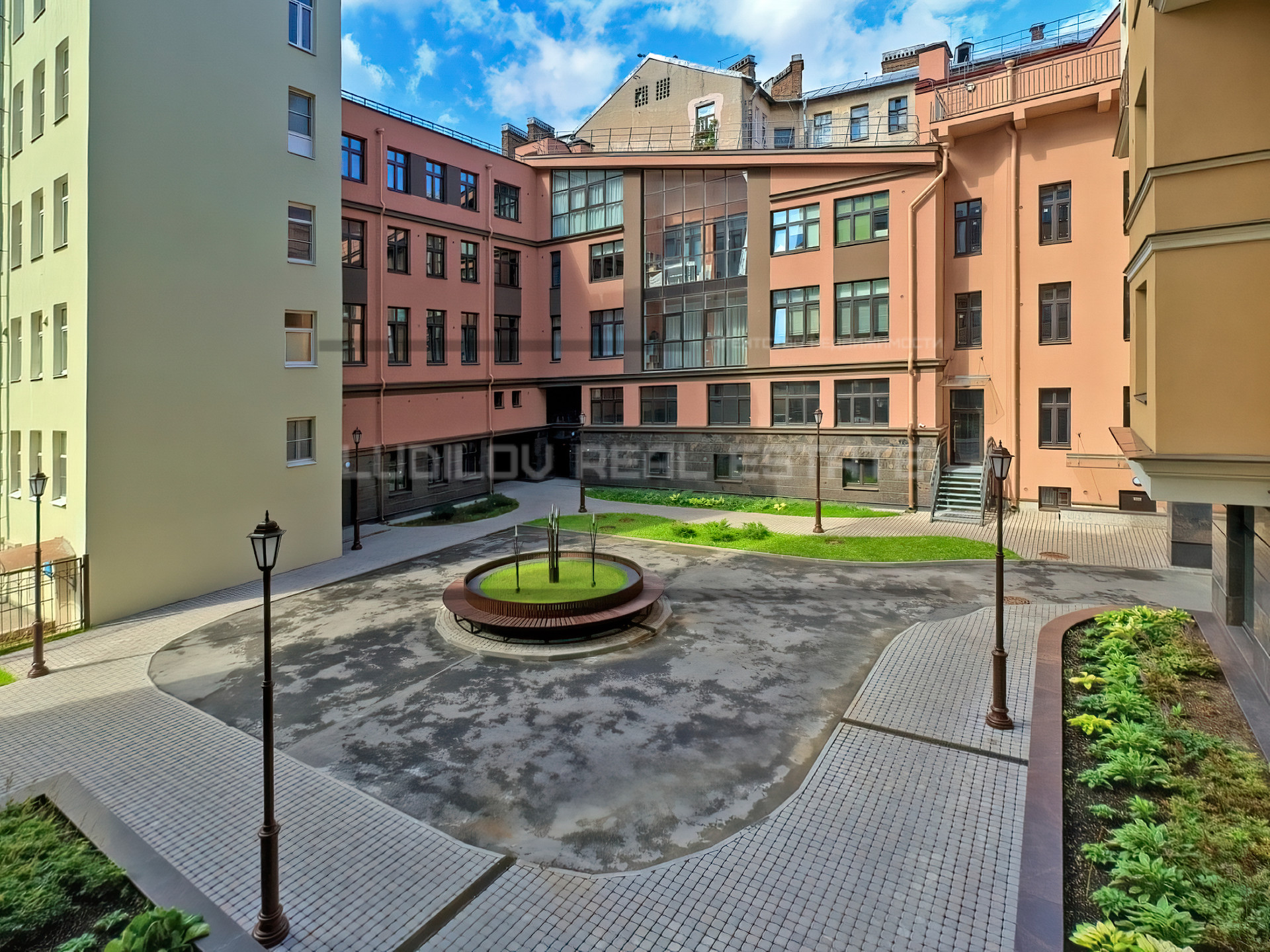 - благоустроенный двор с ландшафтным дизайном