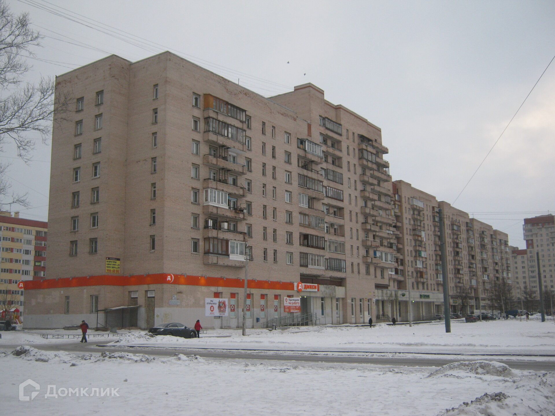 До ближайшей станции метро, пр. Ветеранов, десять минут на транспорте.