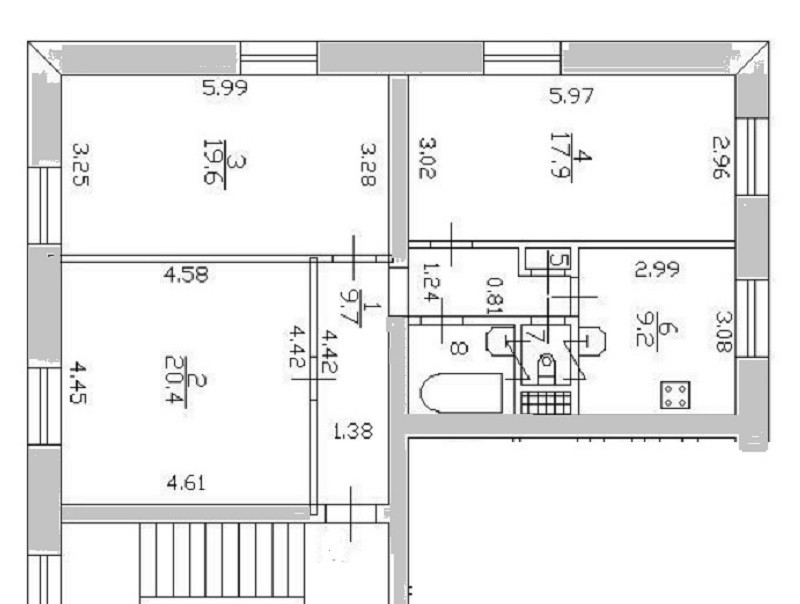 3-комнатная квартира, 81.4 м2, этаж 2 / 5, на продажу в Санкт-Петербурге, Карташихина улица, 7
