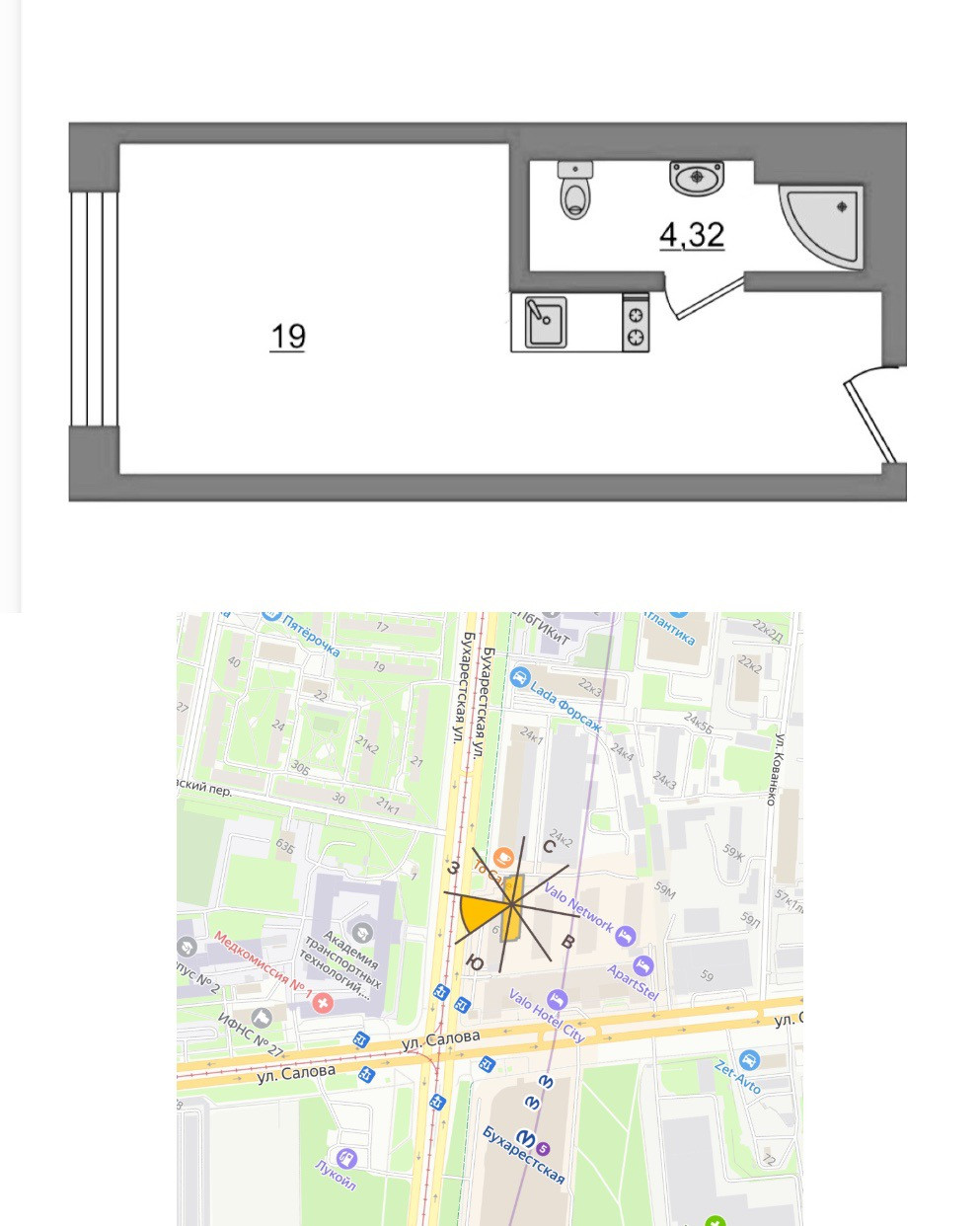 Квартира студия, 23.3 м2, этаж 13 / 18, на продажу в Санкт-Петербурге, улица Салова, 61