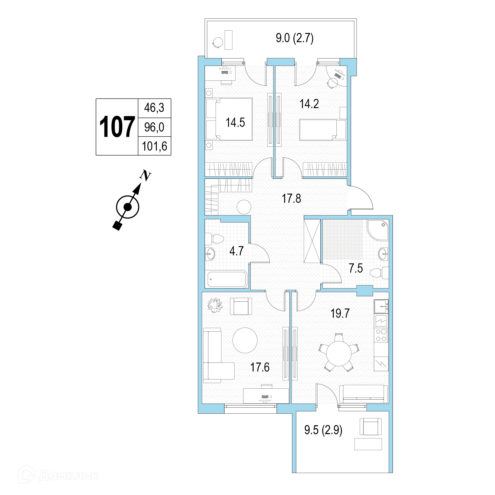 Общая площадь 101.6 м2