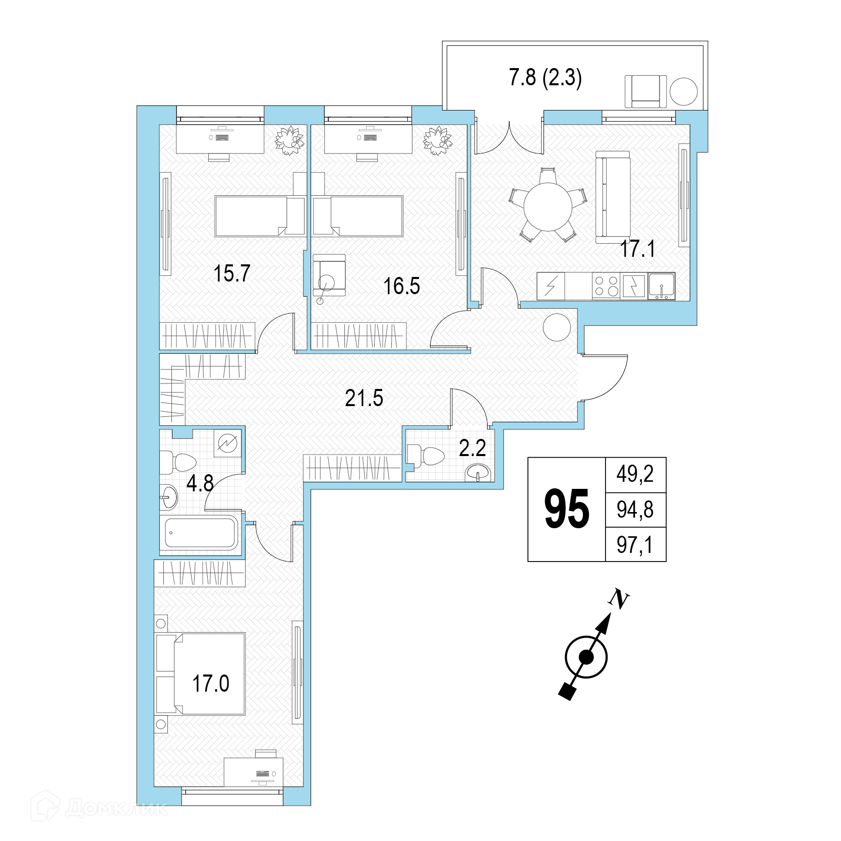 Общая площадь 97.1 м2