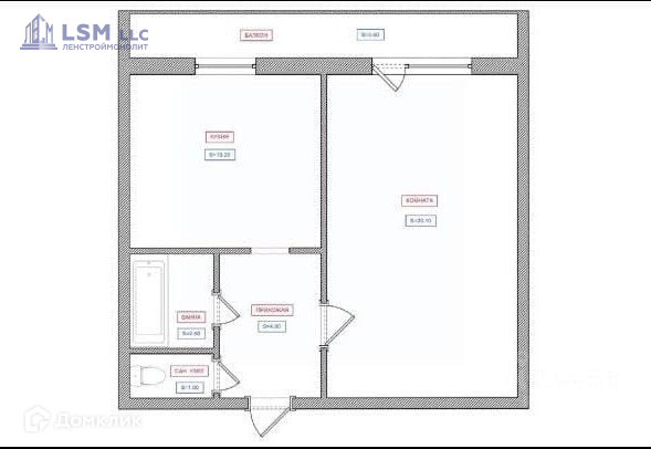 Общая площадь 40.4 м2