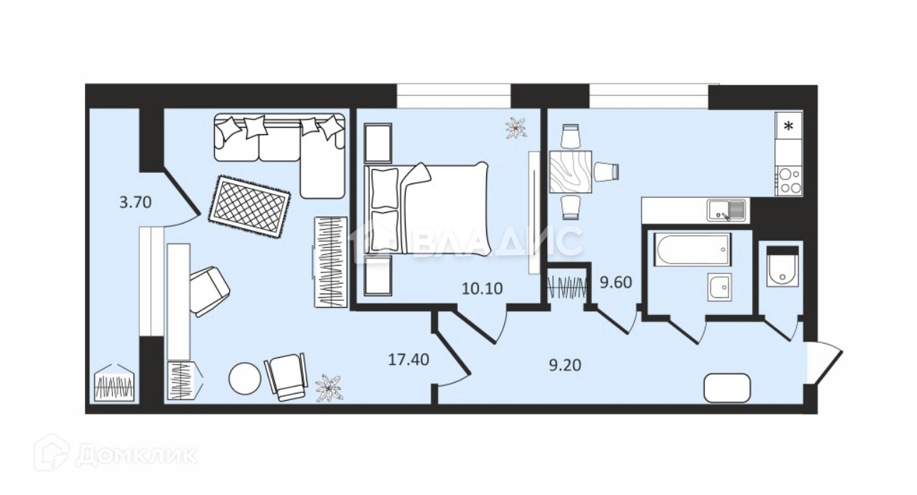 * Комнаты уютные, просторные и светлые, что позволяет выгодно зонировать пространство.