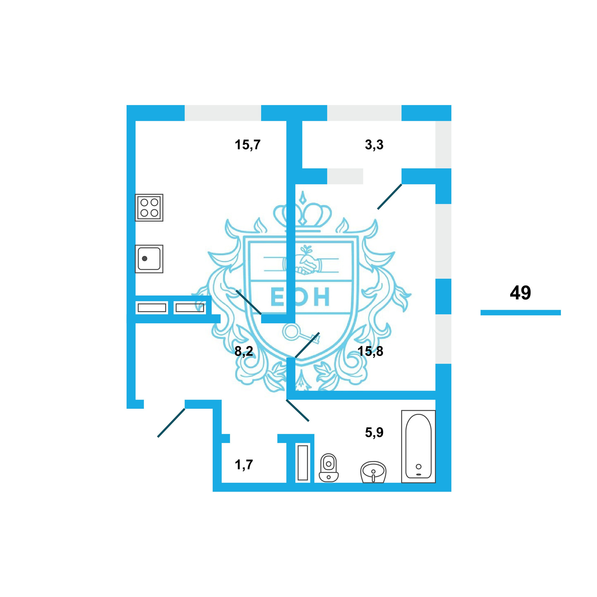 Общая площадь 47.2 м2