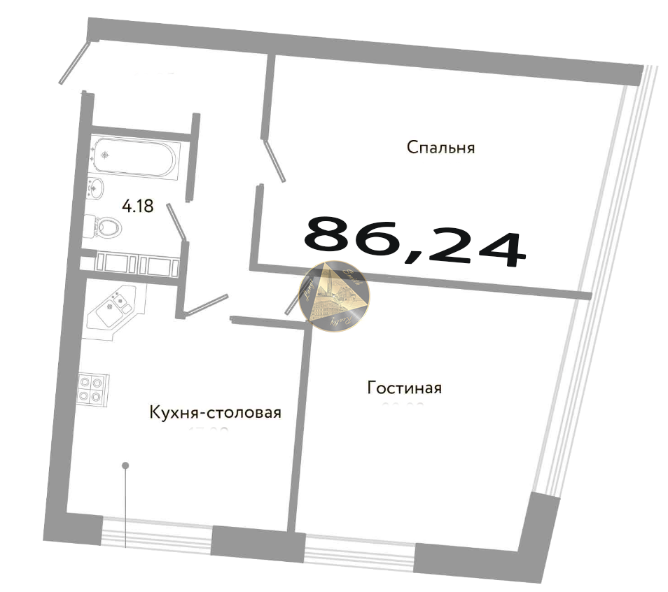 - Общая площадь квартиры 86,24 м2.
