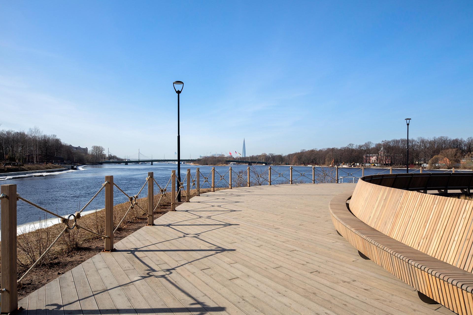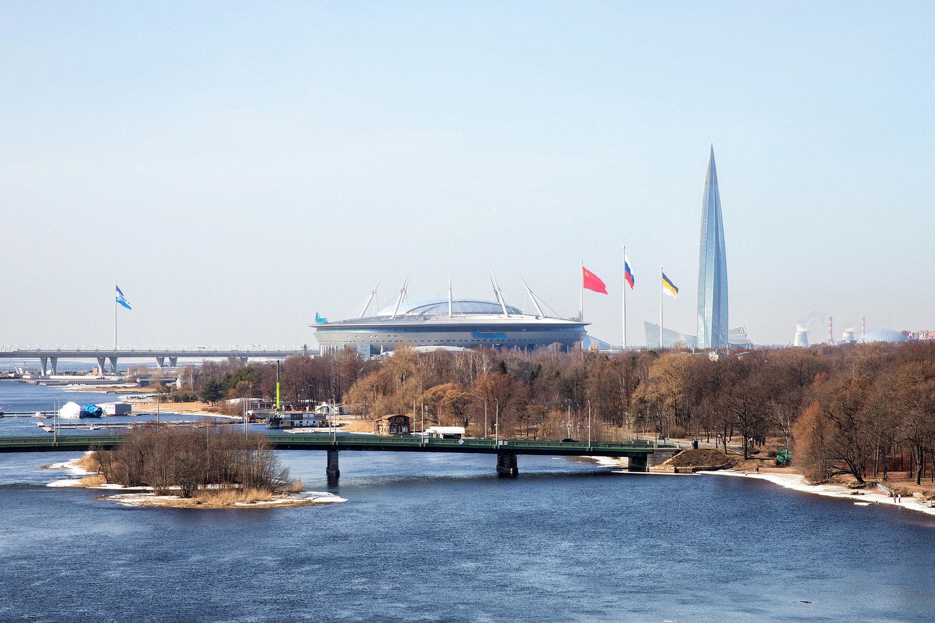 Сюда легче попасть из центра, дорожное движение организовано так, что вам приходится стоять в пробках на узких односторонних улицах, чтобы попасть на Крестовский, а сюда по Ждановкой набережной вы свободно проезжаете сразу к жилому комплексу