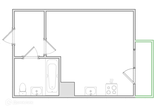 В прямой продаже квартира-студия (25.4 кв.м.). Много свободного места для хранения вещей: встроенная ниша в коридоре (можно сделать гардеробную систему), а также застекленная лоджия.