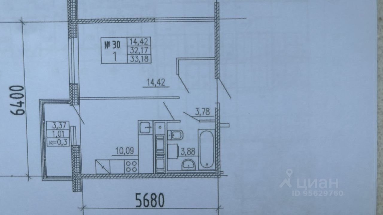 Общая площадь 33.18 м2