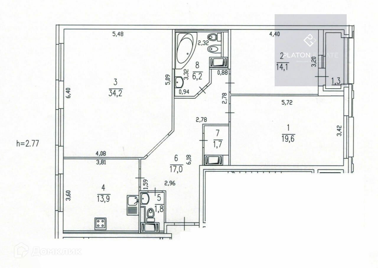 Высота потолков 2.8 м