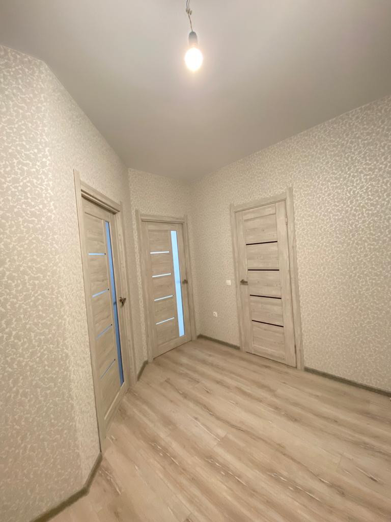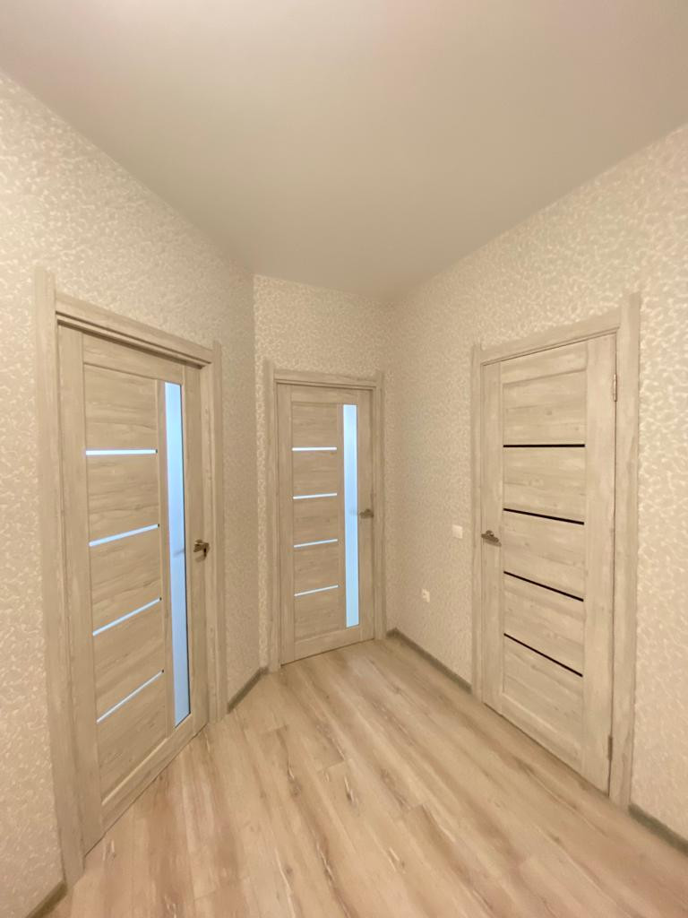 * Натяжные потолки, качественный ламинат, флизелиновые обои, установлены добротные двери;