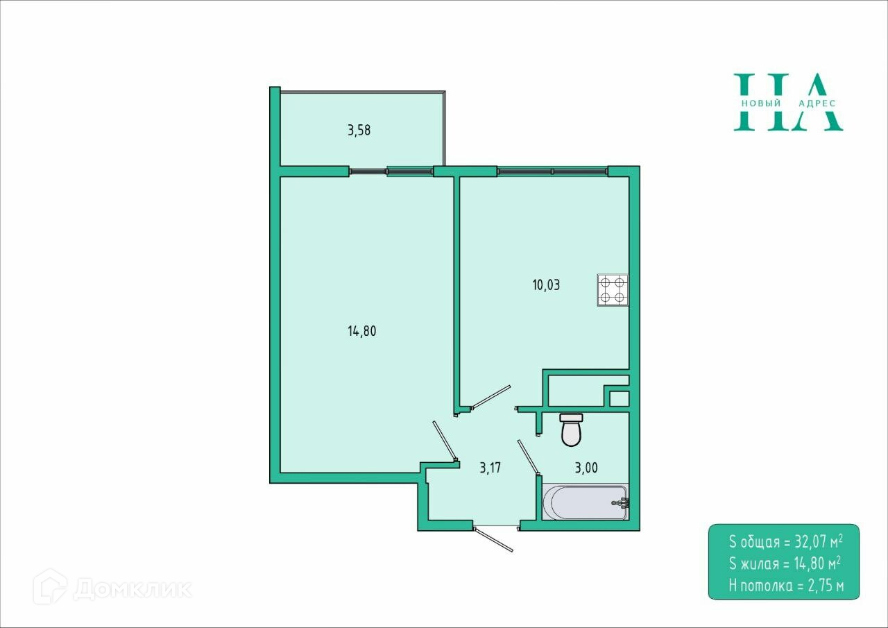 Общая площадь 32 м2