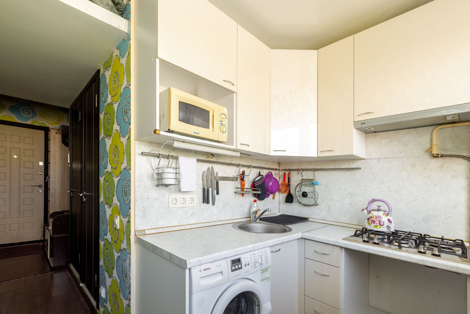 - Кухня - 6,3 кв.м, с кухонным гарнитуром