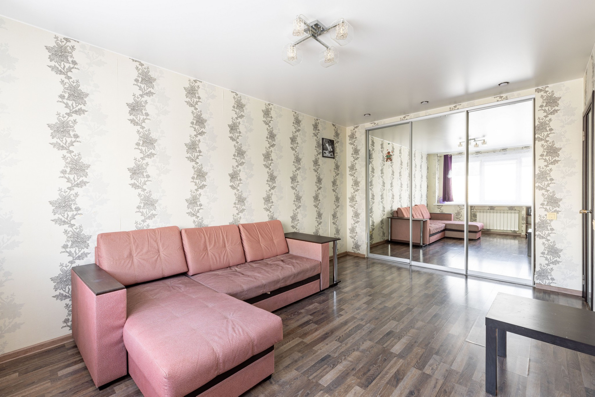 - Просторная комната - 17,3 кв.м. В комнате большой встроенный шкаф для хранения, диван