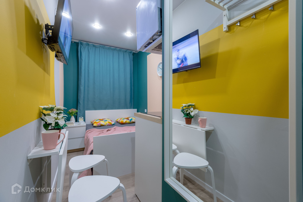 В студии будет сделан новый ремонт, иметься вся мебель и бытовая техника как на фото. Также объект продаётся со всеми предметами быта для сдачи в аренду, дополнительно приобретать Вам ничего не придётся.