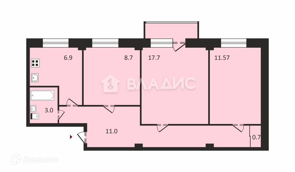 Площадь кухни 6.9 м2
