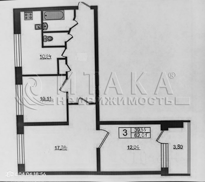 3-комнатная квартира, 62.01 м2, этаж 3 / 9, на продажу в Санкт-Петербурге, Товарищеский проспект, 4