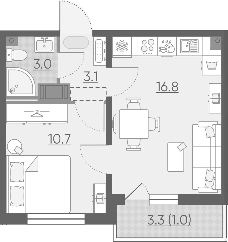 Общая площадь 35 м2