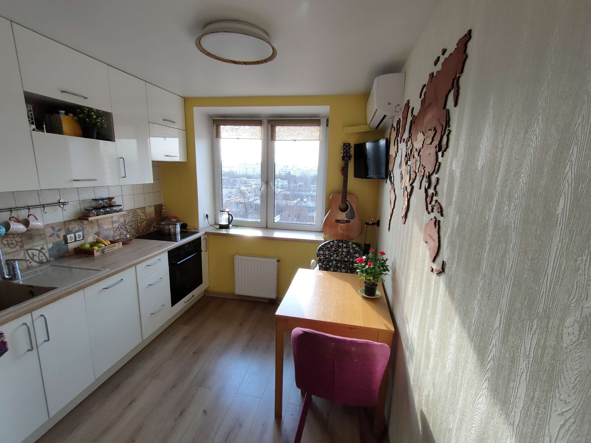 Квартира  на 10-м этаже с видом на ухоженные "сталинки" и неповторимые закаты, под онами растут деревья.