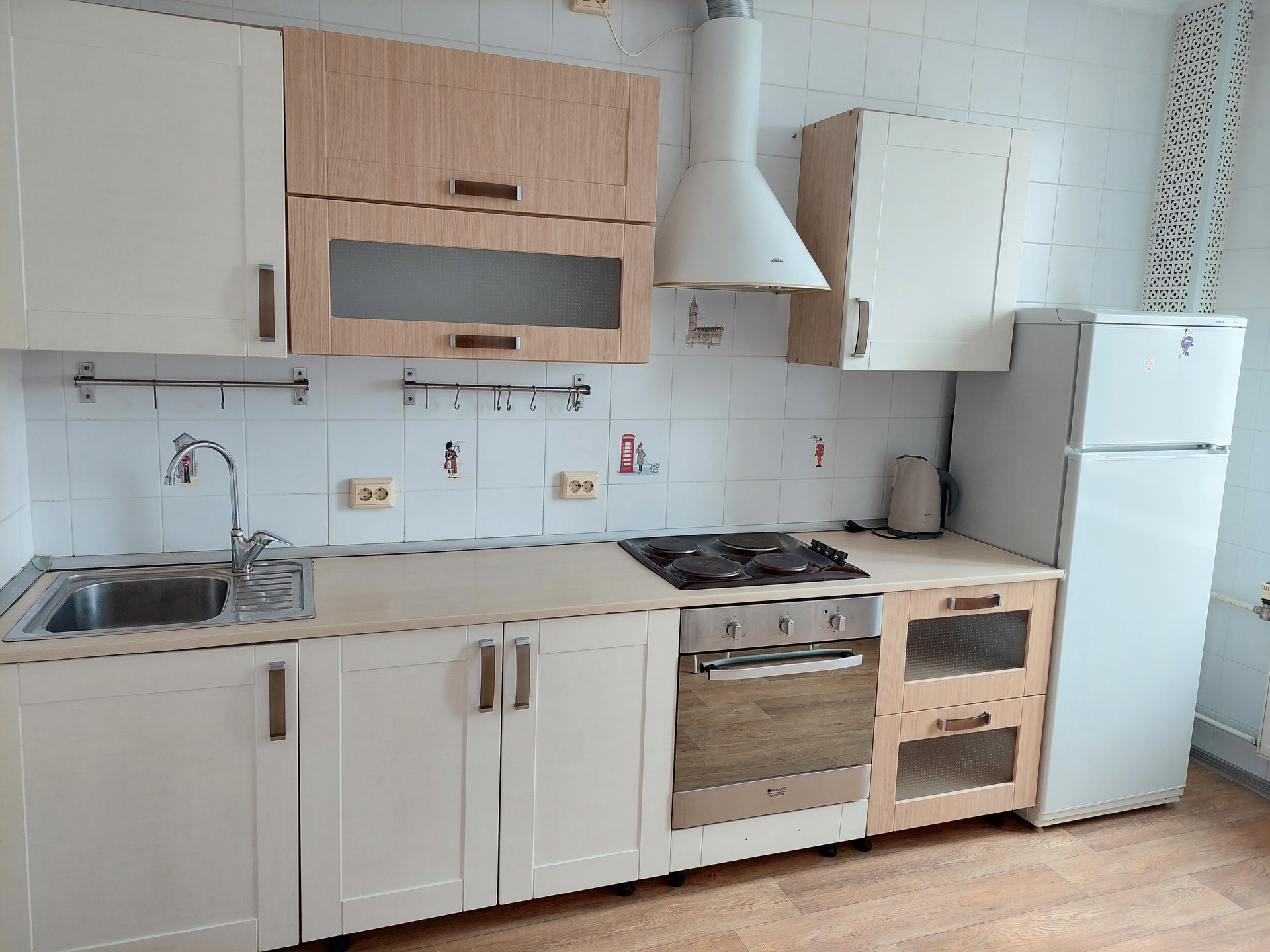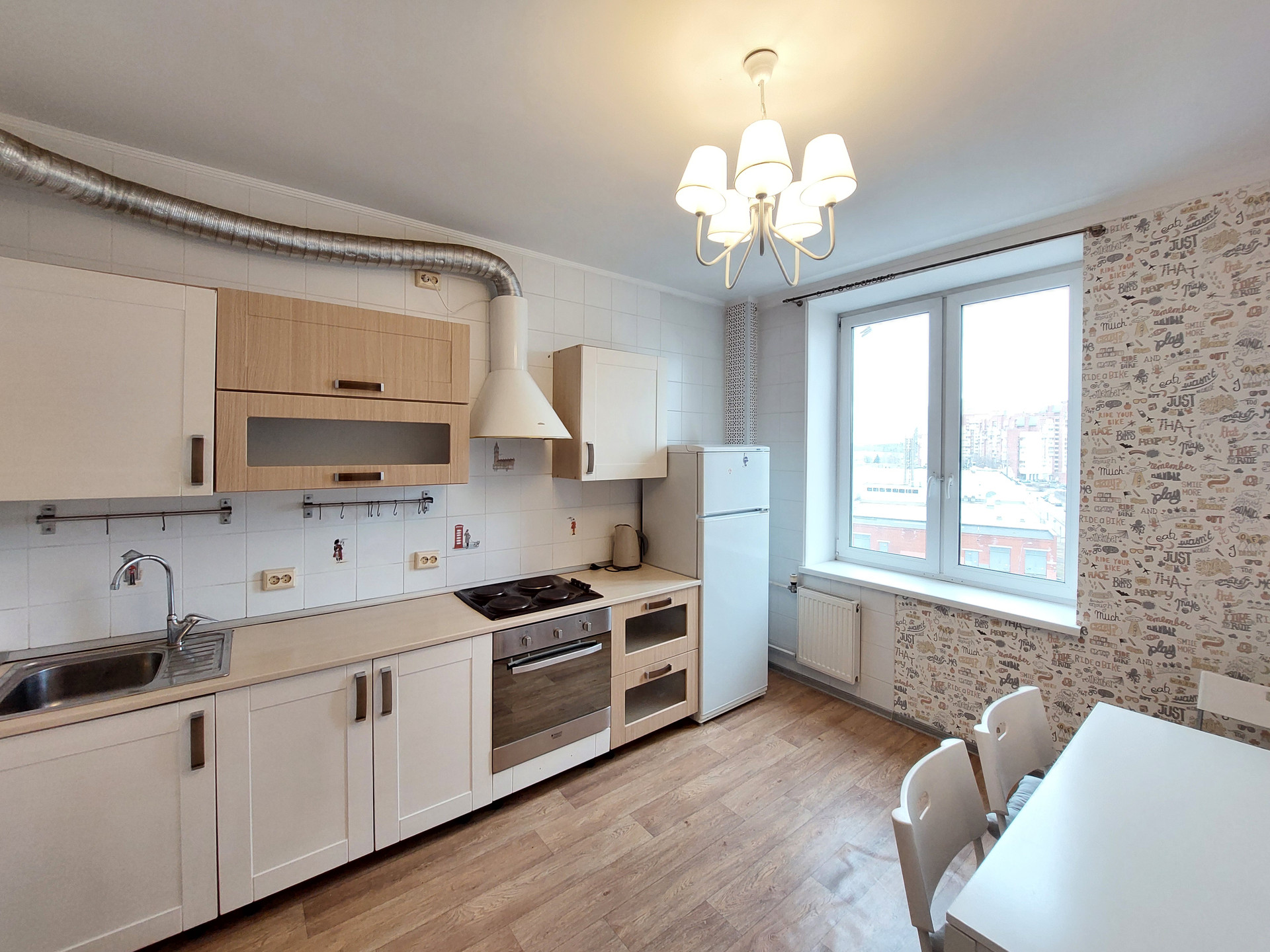 В подарок покупателям оставляем кухонный гарнитур со встроенной бытовой техникой (варочная панель Gefest, духовой шкаф Hotpoint Ariston, вытяжка), стиральную машину Beko, холодильник Atlant, обеденный стол со стульями, корпусную мебель, диван, все светильники.
